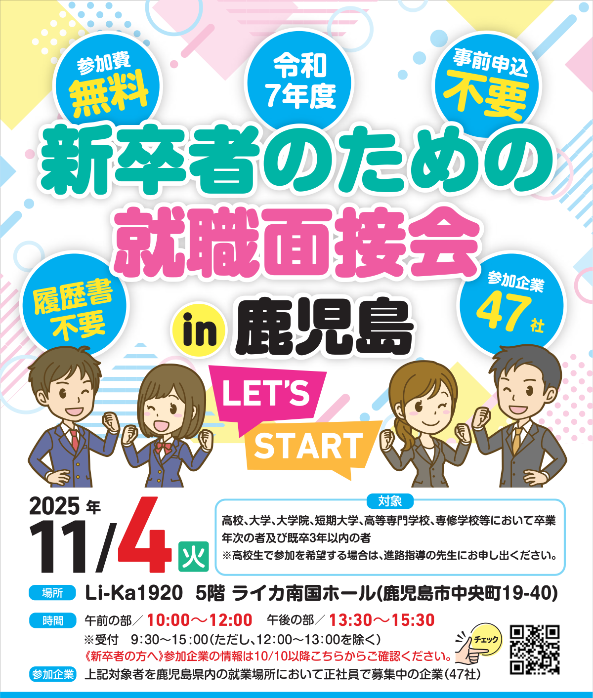 「新卒者のための就職面接会 in 鹿児島」が開催されます!