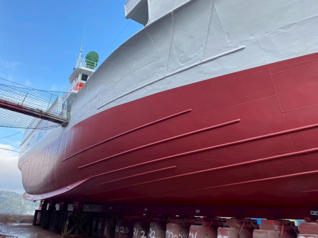 今月から浮ドックに上架→修繕を行っていた